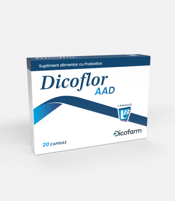 Supliment alimentar cu probiotice L. rhamnosus GG, indicat să favorizeze echilibrul florei bacteriene intestinale.